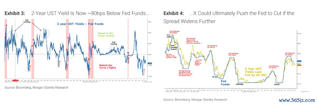 陳訴分析稱,勞能源市集數(shù)據(jù)是好意思聯(lián)儲方案中最具滯后性的謀劃之一,這時時導(dǎo)致其在降息和加息上齊“慢半拍”。但是,市集如故提前步履。陳訴征引數(shù)據(jù)稱,債券市集當(dāng)今瞻望好意思聯(lián)儲在9月份降息的可能性高達(dá)88%,且2年期好意思國國債收益率已比聯(lián)邦基金利率低約80個基點。歷史上,這種利差擴大時時是降息的前兆。
