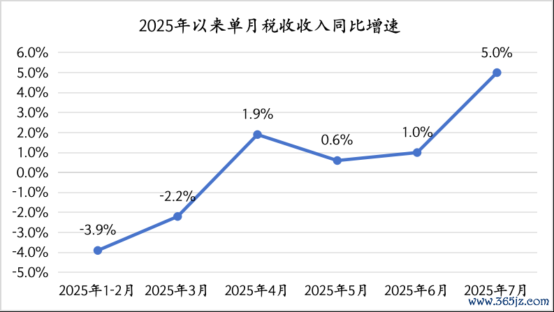 按照歷史數據推算,7月,寰宇一般群眾預算收入20273億元,同比增長2.6%,增速比上月擴大近3個百分點。其中,稅收收入18018億元,同比增長5.0%,增速比6月加速4個百分點;非稅收入2255億元,同比著落12.9%,降幅比上月擴大9.2個百分點。